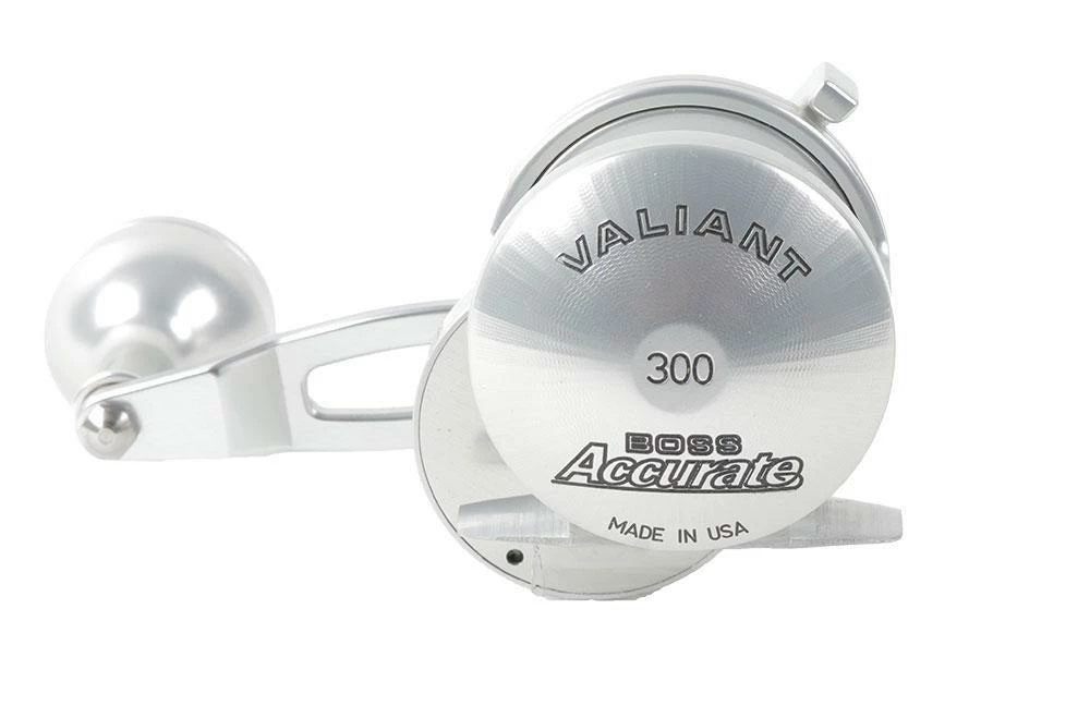 The Accurate Valiant 2 Speed Lever Drag Reels are an absolute flagship when it comes to big fish, on small reels! Accurate reels are proudly made in the U.S.A, and are made for the saltiest, and most dedicated fisherman there are. Whether you are on the East or West Coast, the Valiant reels are what you should have on your boat to ensure you look stylish but with the great performance to back you until that fish hits the deck! Comes in a flat polished silver, with black letter accenting as a new standard color option. Though special colors are available upon order request.