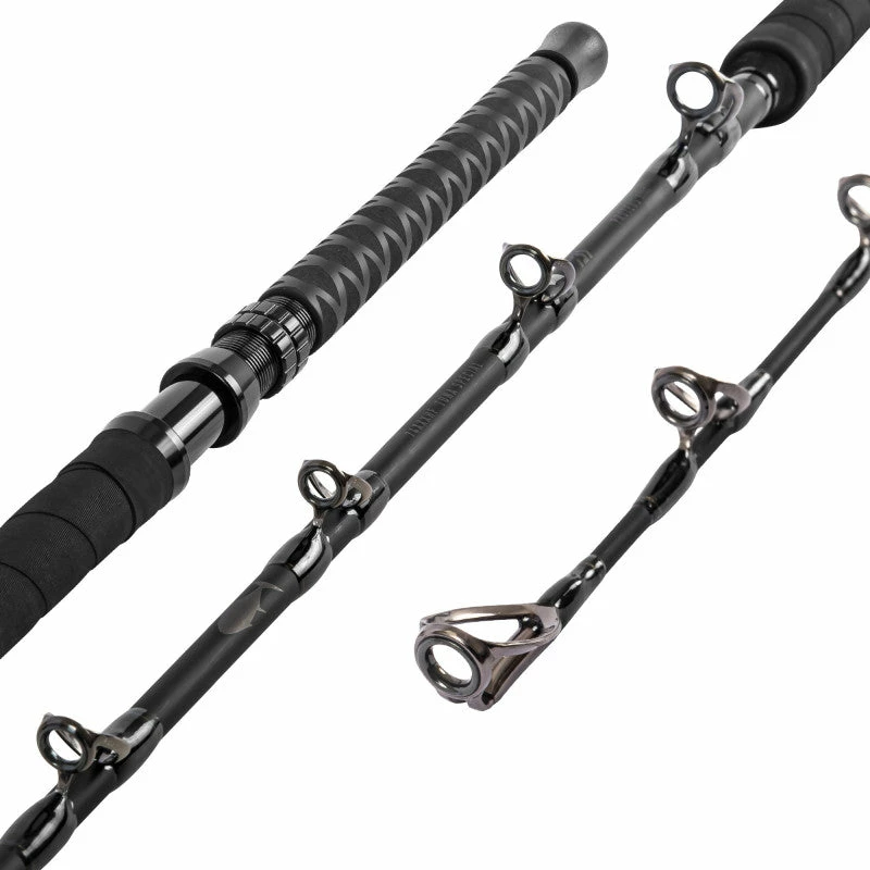 The long fore grip allows you to use it for leverage along multiple axis points. Fuji HD guides and HD aluminum reel seat are incorporated with the XXXH blank specific and rigorously tested blank action painted widow black.