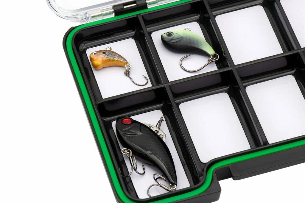 This storage is built with a 12 compartments that can fit products such as Eurotackle Z-Viber Micro, 1/16 or 1/8 and even Soft-Lock Tungsten Jig Heads and small spoons like our famous T-Flasher.