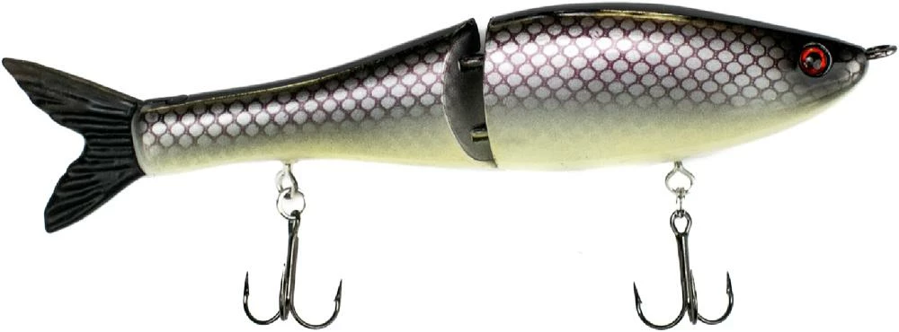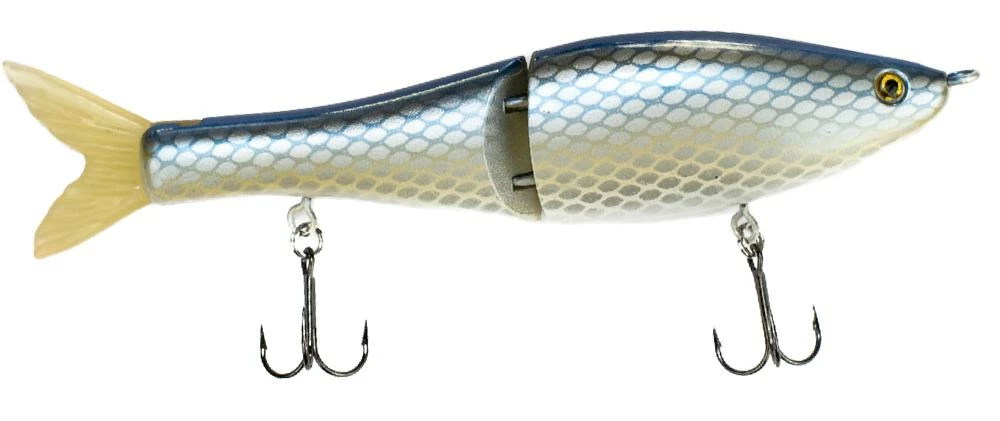 The G-Ratt Baits Poppa Pete Swimbaits are a silent slow sinking glide bait weighing 5 Ounces and 10 inches in length equipped with heavy-duty hardware, size 2/0 hooks, and rotating hangers. The tails are easily replaceable. Papa Pete has a nice wide glide on slow reel cranks and then can be fished fast for an erratic baitfish action and sinks extremely slow in a level position.