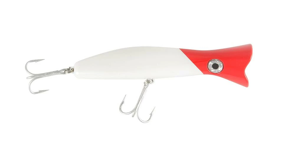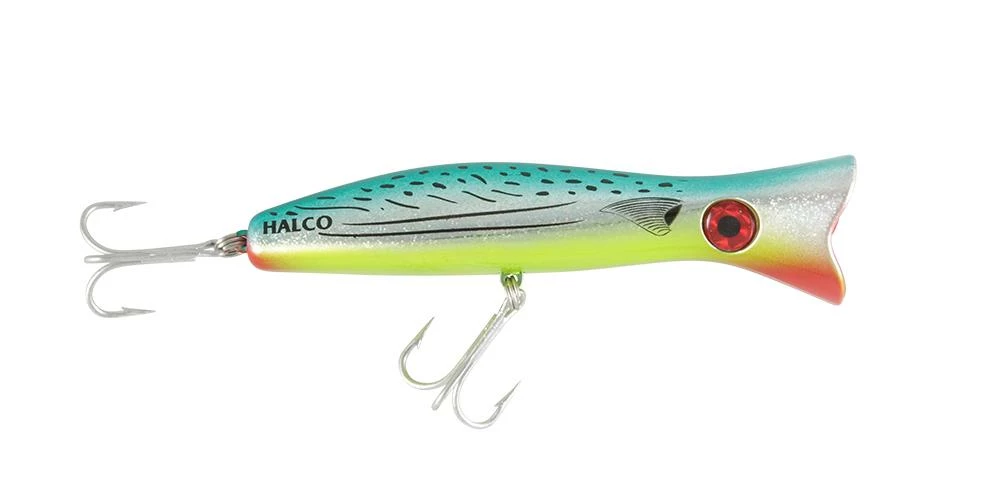 The Halco Roosta Popper 160 is perfect for targeting game fish that are aggressively  attacking bait fish near or on the surface.  The hardware on these poppers is of the highest quality and will stand up to big fish like tuna, GT’s, dorado, and peacock bass. They are best used with a heavy spinning rod and reel due to the higher inches of line retrieved per crank.  We prefer to have braided line with a short 3′ top shot of monofilament or fluorocarbon.