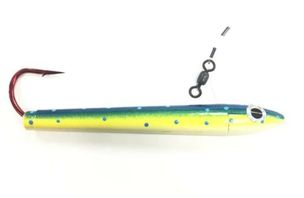 The Lead Masters Cedar Plugs have an erratic swimming action and they really attract the fish while trolling. Lead Masters cedar plugs come rigged with a single hook, monofilament and a swivel. Popular for Yellowfin, Bluefin, Albacore, Dorado and even Wahoo.