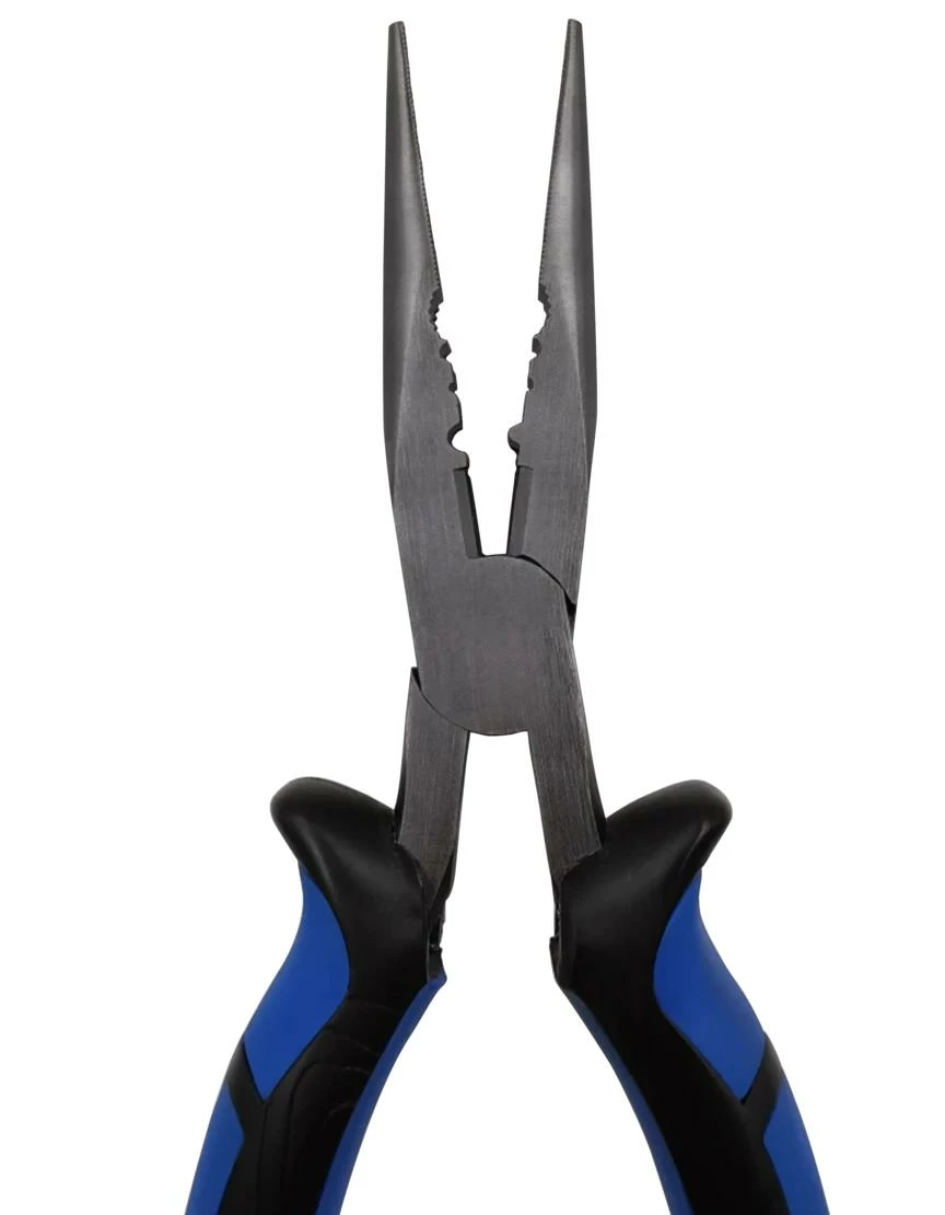 Mustad 8″ Straight Nose Pliers are perfect for removing hooks, crimping, or cutting line.  Built with functionality in mind, these pliers feature a line and wire cutter, and a crimper for sleeves and lead. Textured jaws ensure great grip when removing hooks. These pliers are constructed with drop-forged high carbon steel and finished with Black for great saltwater corrosion resistance. Durable double-moulded handles add comfort and a secure grip.