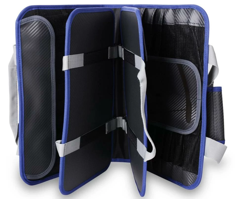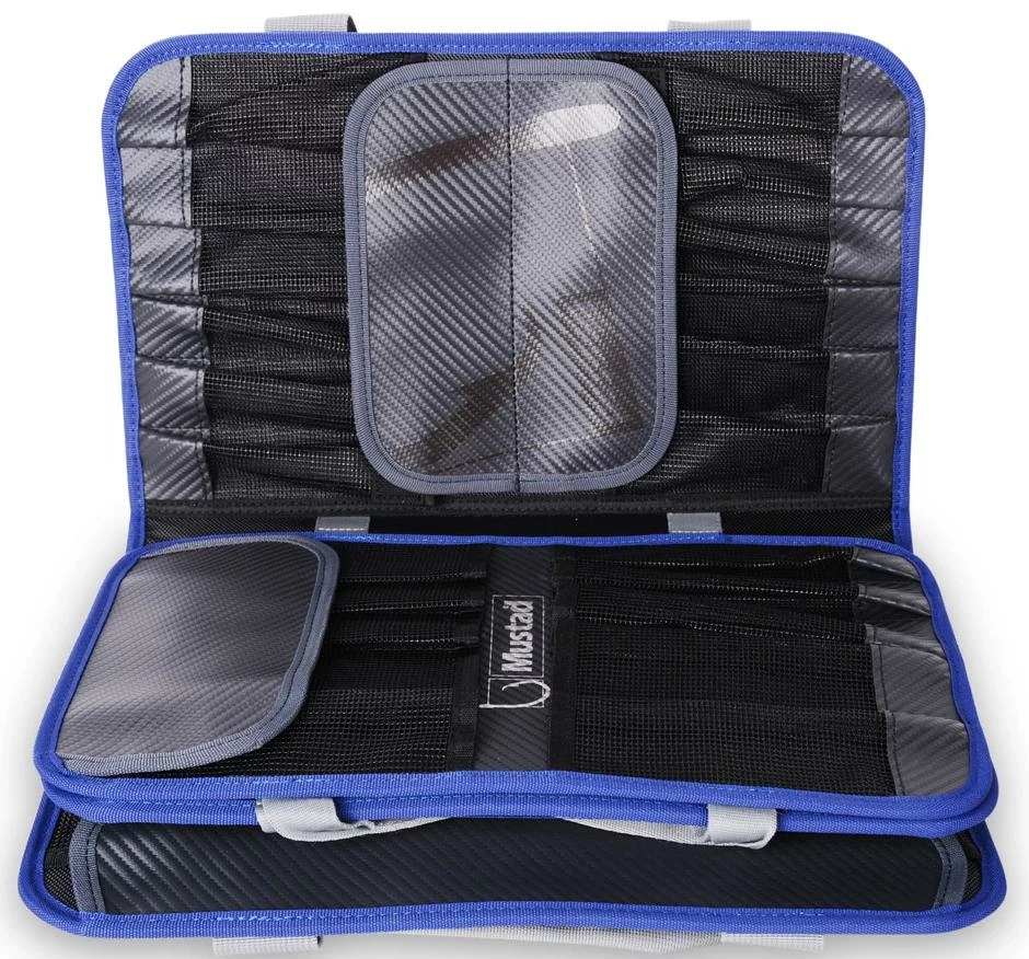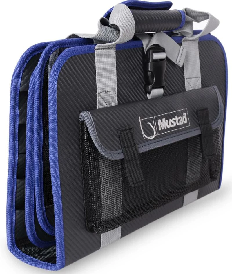 Keeping organized in the boat and at home is all part of the fun. The waterproof Mustad Jig Pouch features many pockets for lures and jigs and an outer pocket, constructed from tough mesh for assist hook and leader material. There are 5 extra-large jig slots that will take jigs up to 11”/30cm, 18 jig slots that will take up to 7,5”/20cm and 12 slots for smaller jigs up to 6”/15cm. In total this practical wallet will accommodate 35 jigs plus room for assist hooks, leader material and much, much more. Features 500Denier waterproof Tarpaulin, one-handed carry handle, practical outer mesh pocket and click lock strap closure. Dimensions: 14,5”/37cm x 9”/23cm x 3”/7,6cm.