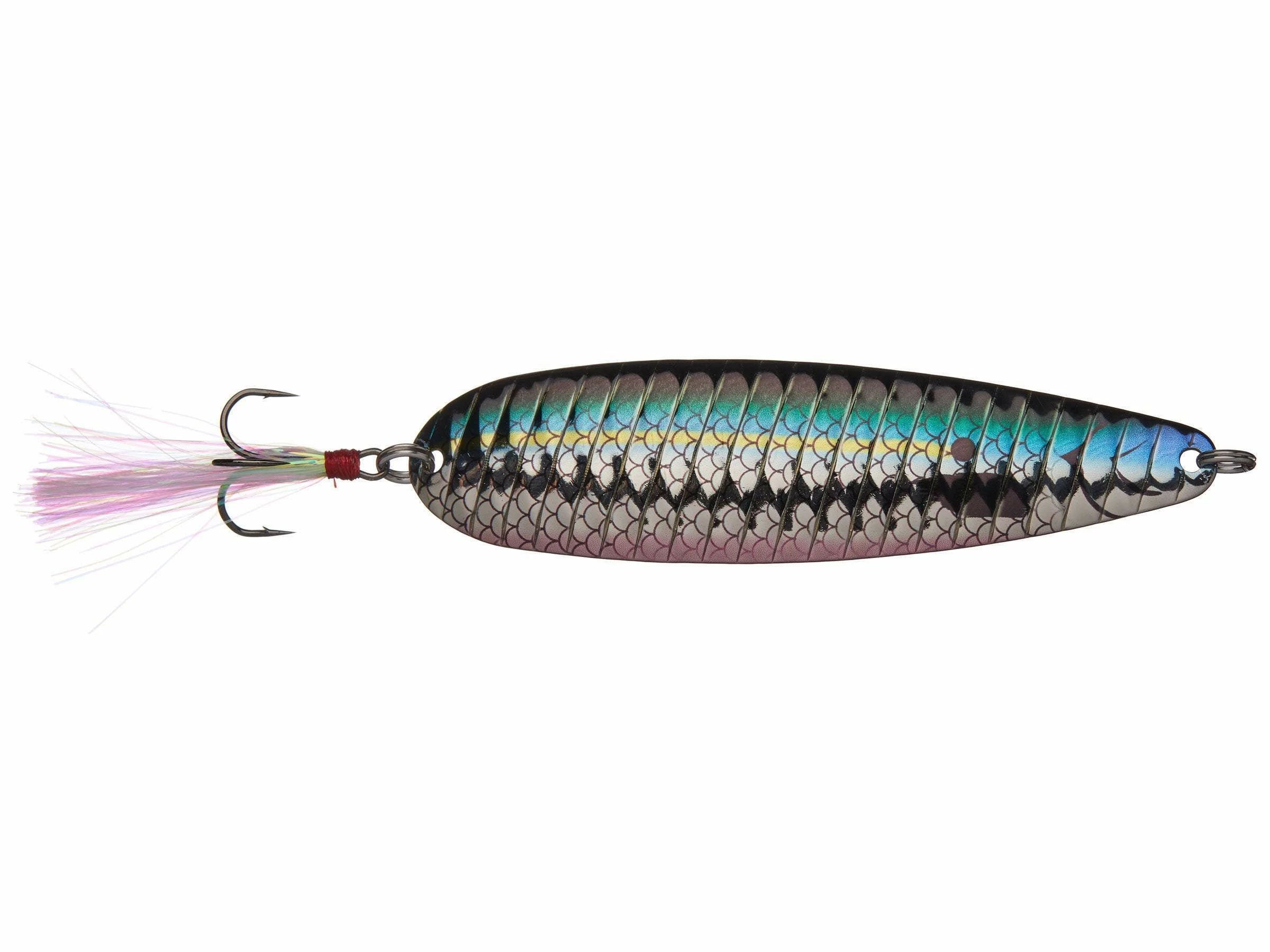 The renowned Nichols Lake Fork Flutter Spoon is one of the hottest baits on the market today. The Spooning technique has caught fire, flutter spoons meet every need. Available in a variety of beautiful different finishes, this bait flutters perfectly, featuring quality Owner ST-36 trebles with hand-tied flashabou, Spro Power Swivels, and Worth split rings.Â
