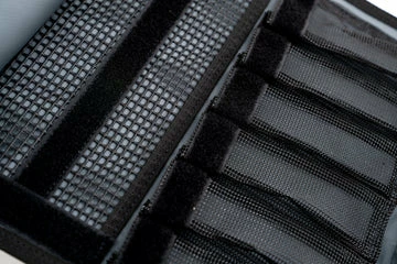 The jig wallet features 12 individual Mesh pockets, which can comfortably store up to 24 large (320g) jigs in the wallet, or by adding the Velcro Insert Sleeve it doubles your storage capacity to 24 pockets fitting a total of 48+ large jigs.