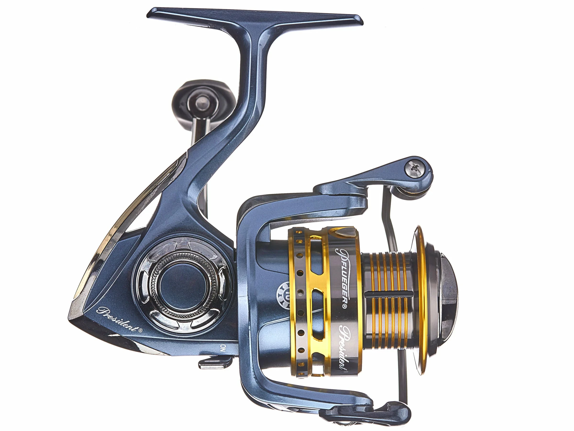 Encased in a graphite body, the Pflueger President Spinning Reel features a stainless steel/oil felt drag that provides consistent drag pressure and increased corrosion resistance. Built with an aluminum bail and slow oscillation gearing, the Pflueger President Spinning Reel promises consistent and uniform line lay. Fitted with an aluminum handle and soft-touch knobs for increased comfort, the Pflueger President Spinning Reel combines outstanding value with best-in-class performance.