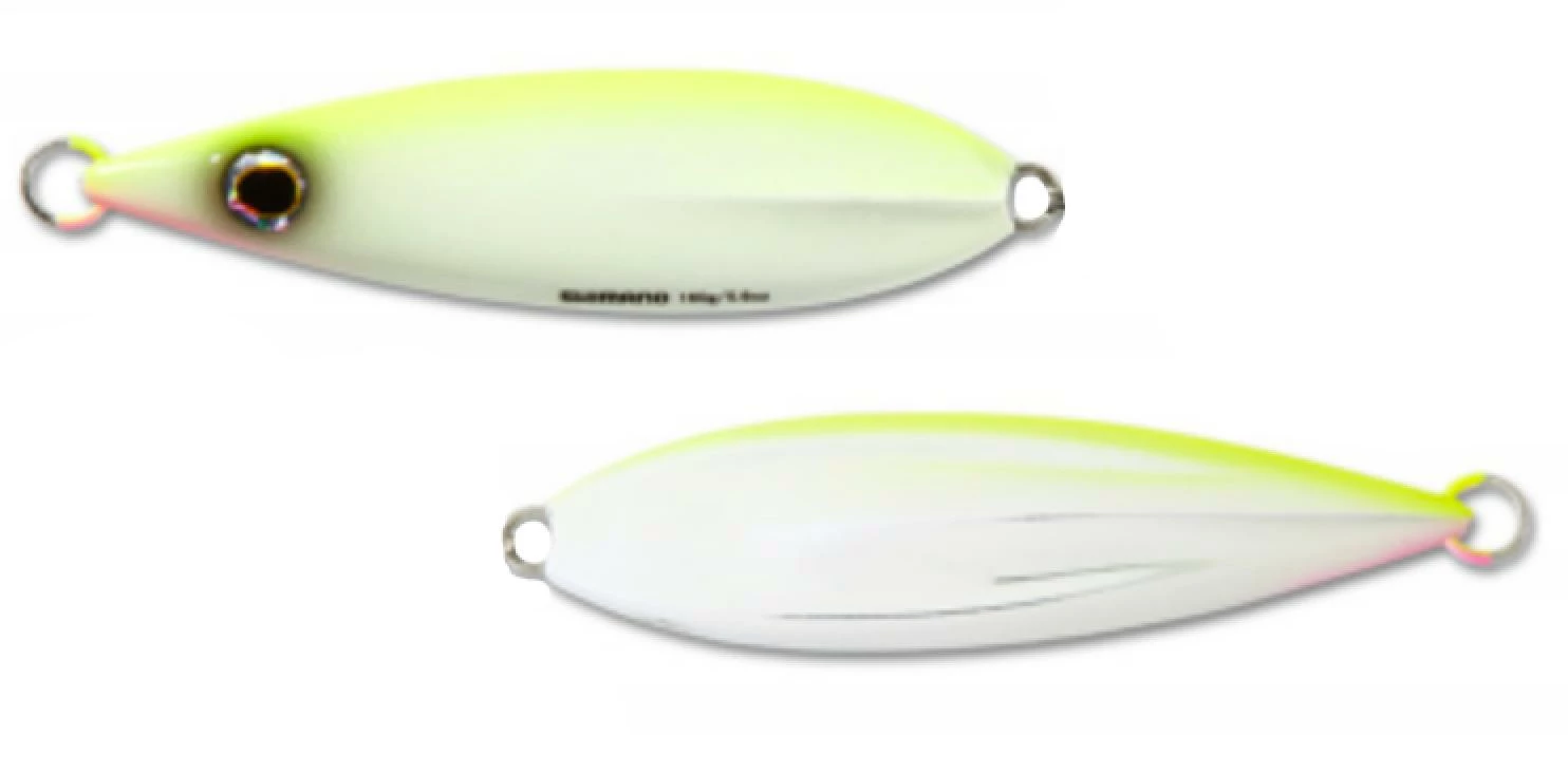 Shimano Butterfly Flat-Fall Jigs Size 300g are the ticket for big tuna, ling cod, and many other species. Drop the jig down to the bottom, then crank it up 30 feet off the bottom and free spool. Or cast the jig and let it fall while free spooling, wait for the bite, then jerk and repeat. The center balanced jig falls with a wobbling action in a horizontal position, keeping the strike zone longer than the Butterfly jig. Great lure for the local big tuna. Designed for our west coast fishery the Shimano Butterfly Flat-Fall Jigs Size 300g and 350g come un-rigged allowing for you to properly rig it for the specific class fish you are targeting.