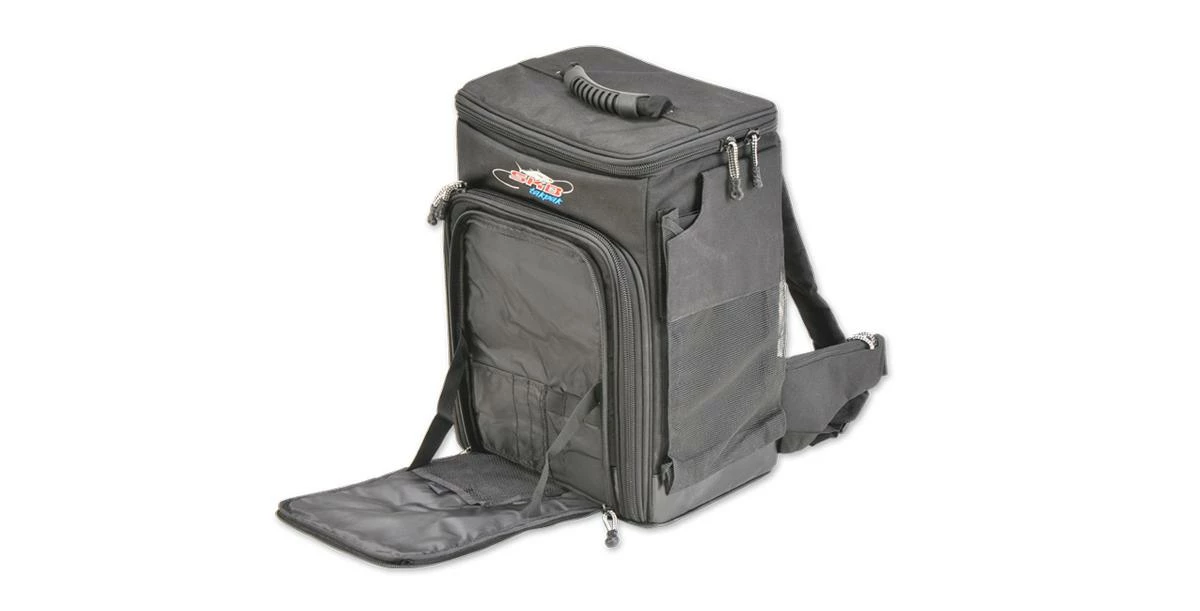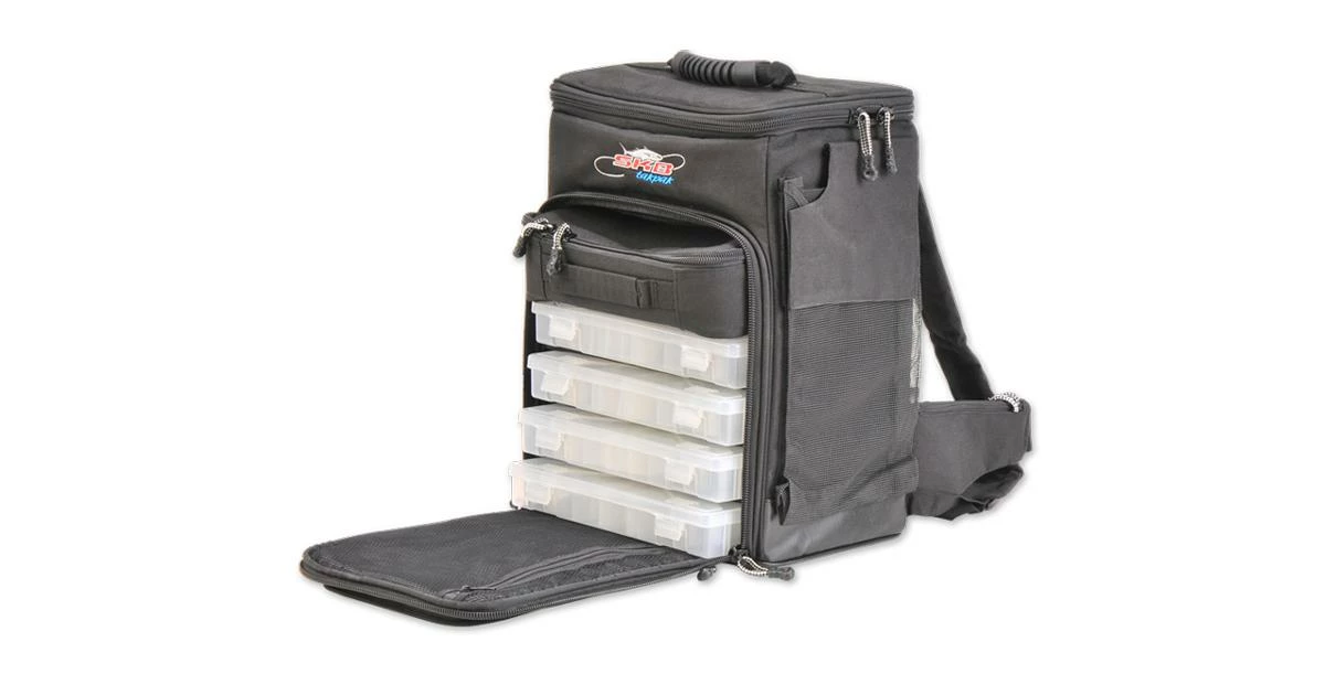 The SKB Tak-Pak Backpack Tackle System is made of 600 Denier cross dyed fabric with a water resistant coating. A durable zipper with weather flap helps keep your valuables dry, including a separate cell phone pouch in the top compartment. Five exterior pockets assist in stowing small boxes, cloths, sunblock, or whatever you need to take for your fishing trip.