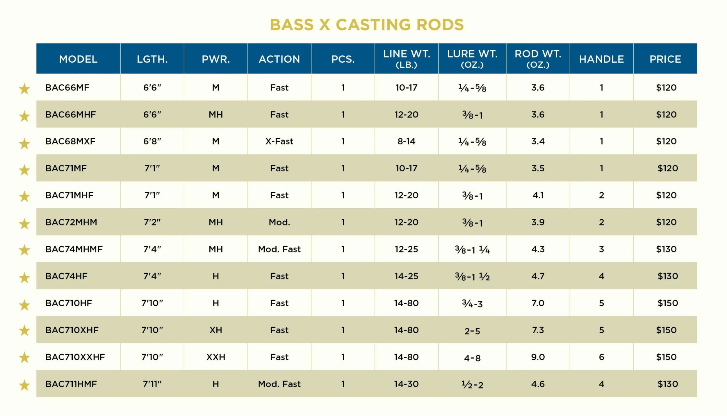 - Split-grip premium-grade cork handle on spinning and non-swimbait casting models.